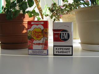 Производитель Чупа-чупсов учел все нюансы оформления дизайна упаковки. Постарался, чтобы ребятня сызмальства привыкала к правильным пачкам. И даже надпись в синей рамочке, такая же, какой курильщиков предупреждает минздрав. Все, как у взрослых. Почти. А стукнет восемнадцать, можно будет покупать и с другой стороны киоска…